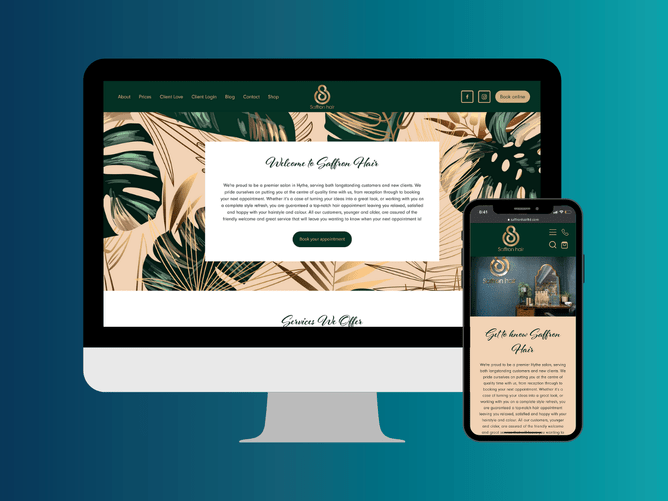 When we met with Saffron's salon owner - Theresa, she had a vision for Saffron's website and that was for it to scream 'opulence', which with their beautiful emerald green and gold colour palette was easy to achieve. When you jump onto the new website now it reflects Theresa's personality and taste perfectly.