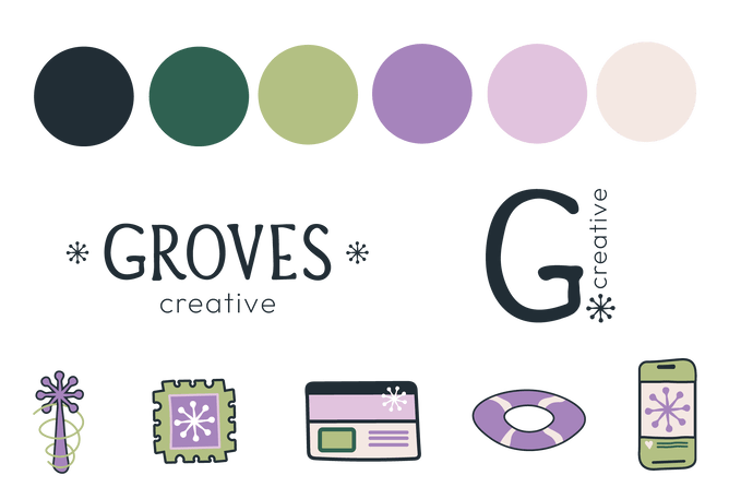 That same day, I went home, put the Groves Creative name into that concept, and it just flowed. Suddenly, I had illustrations, icons, and ideas for my website popping into my head non-stop. It felt right.