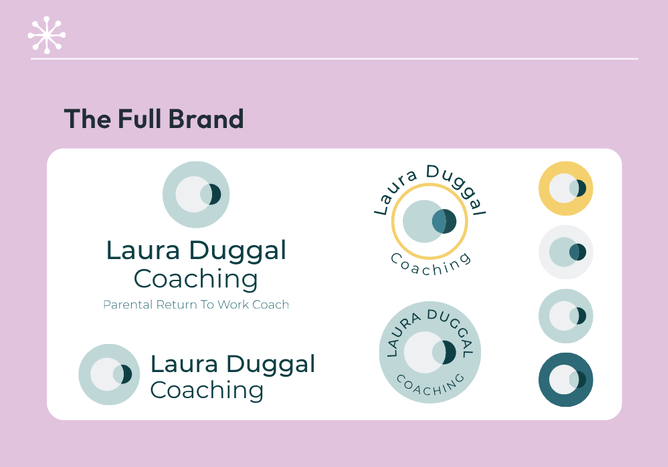 The final logo features a circular icon made up of three connected shapes — a subtle nod to the ‘L’ and ‘D’ from Laura’s name. Each segment represents one part of her coaching ecosystem: