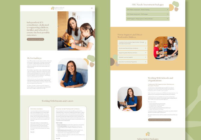 Kathryn came to me at the very beginning of her business journey. She had a clear purpose, a deep sense of integrity, and a passion for helping families navigate the world of Special Educational Needs with empathy, clarity, and confidence. She just needed the right brand identity — and later, a website — to communicate all of that.